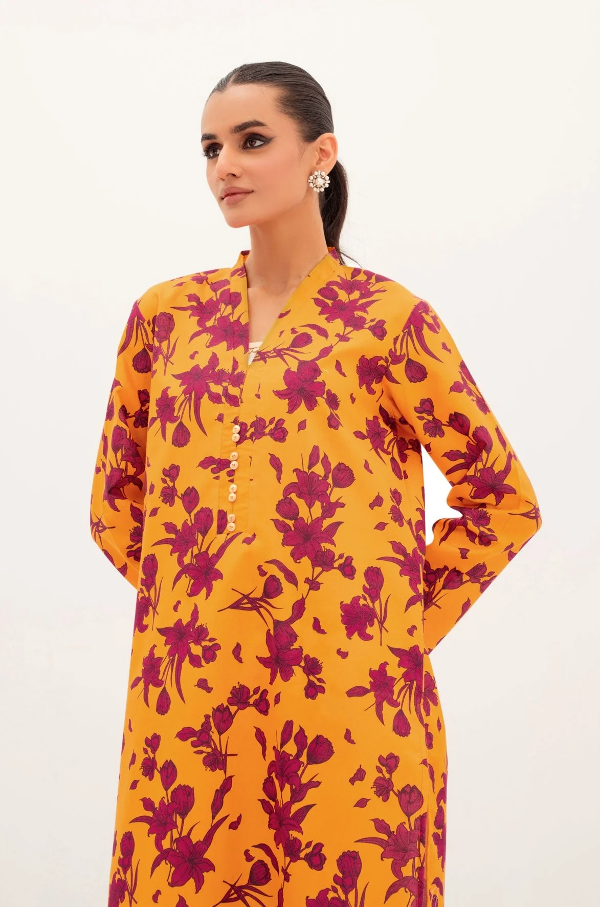 Digital printed Front, Back, Full Sleeves, V - Style Neckline with a placket, paired with Printed Culottes.