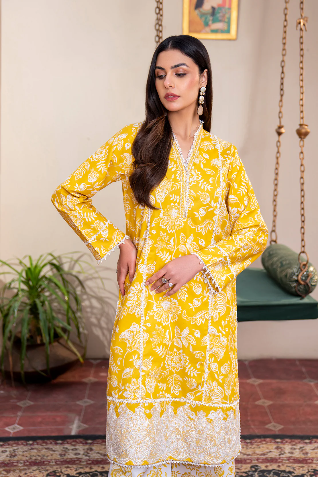 Upgrade your style closet with our two-piece printed embroidered suit, featuring digital printed lawn shirt paired with printed trousers for a contemporary look.