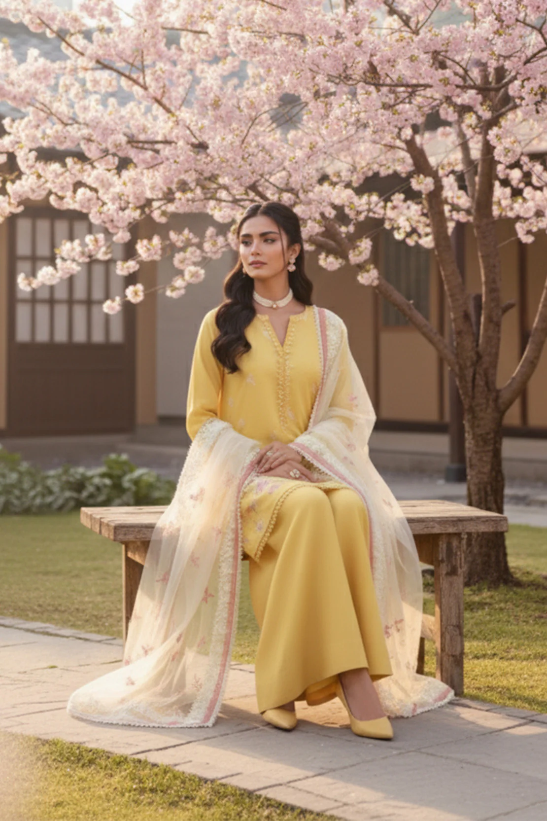 Embroidered - 3 Pc Lawn Suit (Net Dupatta)