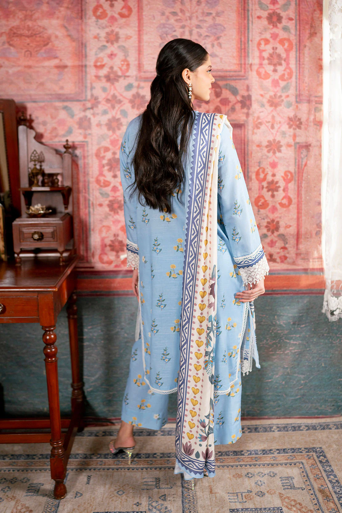 Elevate your style game in our embroidered three-piece featuring Shirt, trousers and dupatta.
